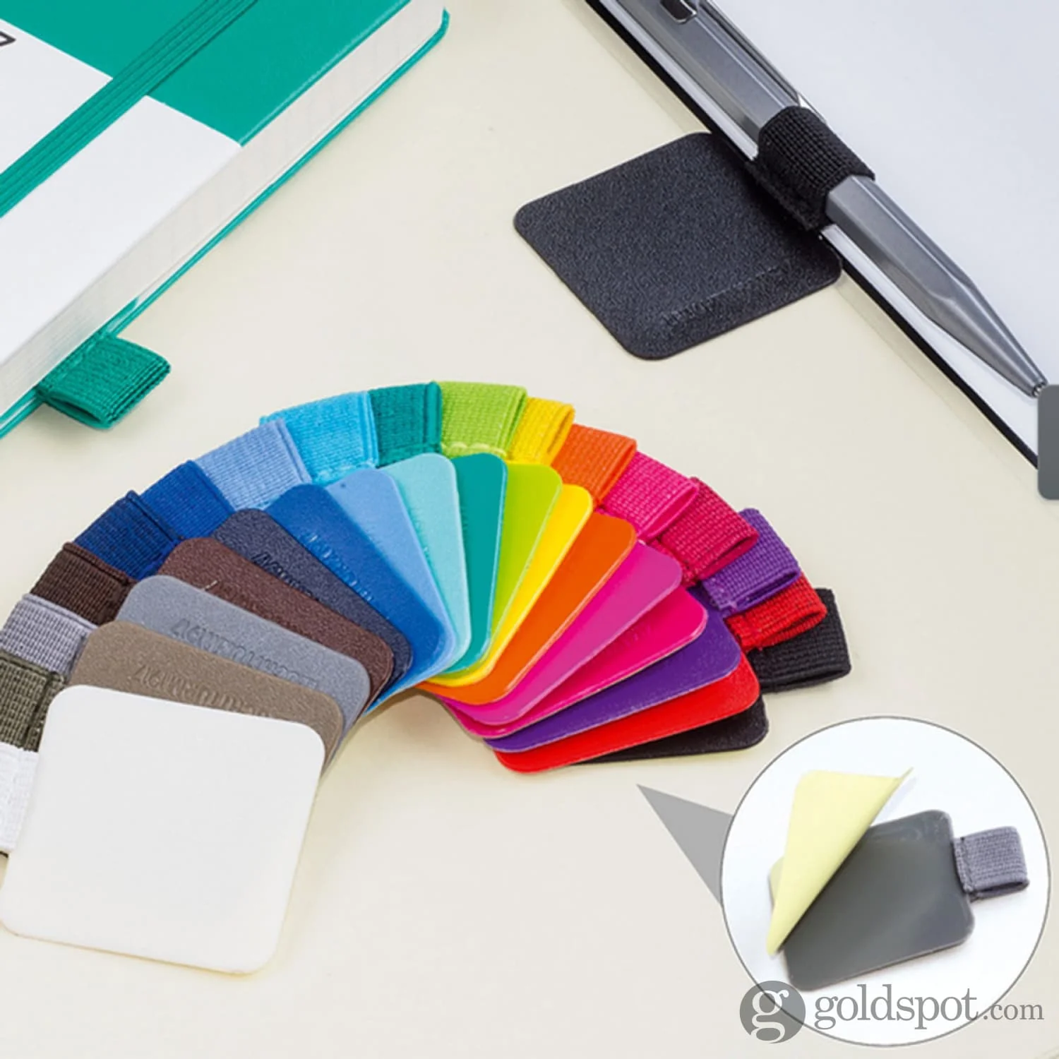 High quality pen loops are self-adhesive. Leuchtturm 1917 pen-holder made from sturdy elastic. Simply decide if your notebook needs one and attach into the cover at the back. The strong adhesive pad will keep your writing instrument secure. Choose from a variety of colors so you can carry your favorite writing tool with your notebook all the time.