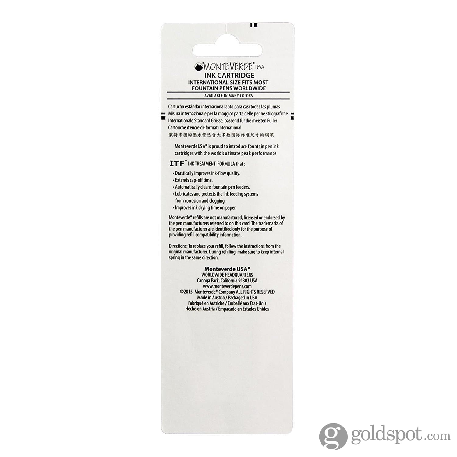 The Monteverde International Ink Cartridge features: